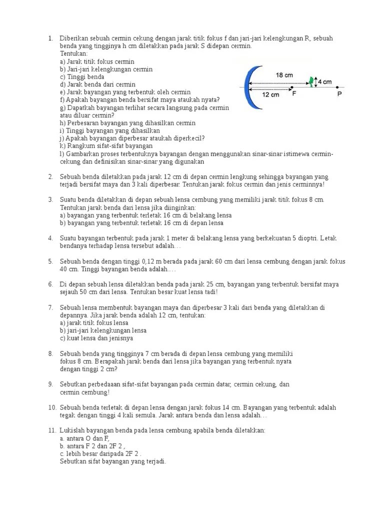 Sebuah benda diletakkan 4 cm di muka cermin datar, maka tinggi bayangan dan jarak bayangannya dari . Contoh soal dan jawaban cermin datar sebuah benda berada 2 meter di depan sebuah cermin datar. Gambarkan pembentukan bayangan lalu tentukan jarak bayangan dan perbesaran bayangan jika jarak benda dari cermin cekung adalah 10 cm. Pemantulan cahaya pada cermin datar contoh soal dan pembahasan. Materi fisika tentang cermin datar adalah.