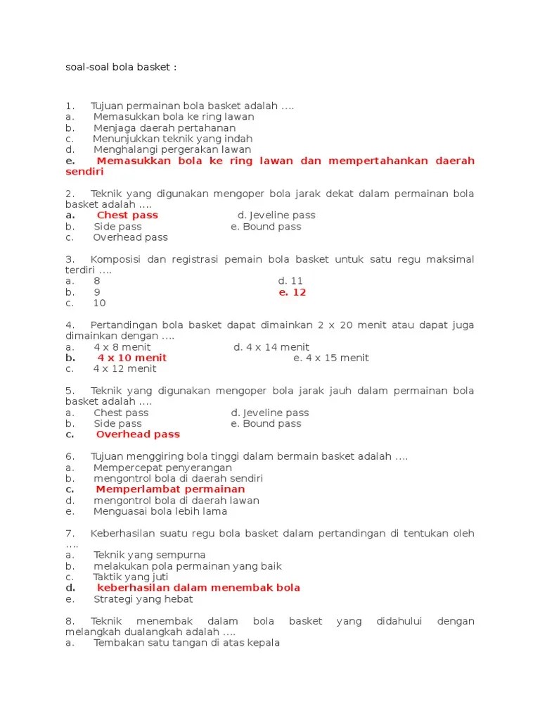 Soal bola basket lengkap jawaban.